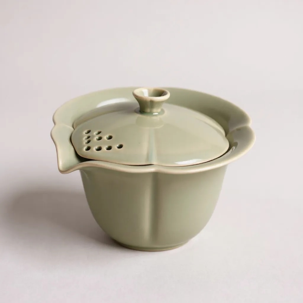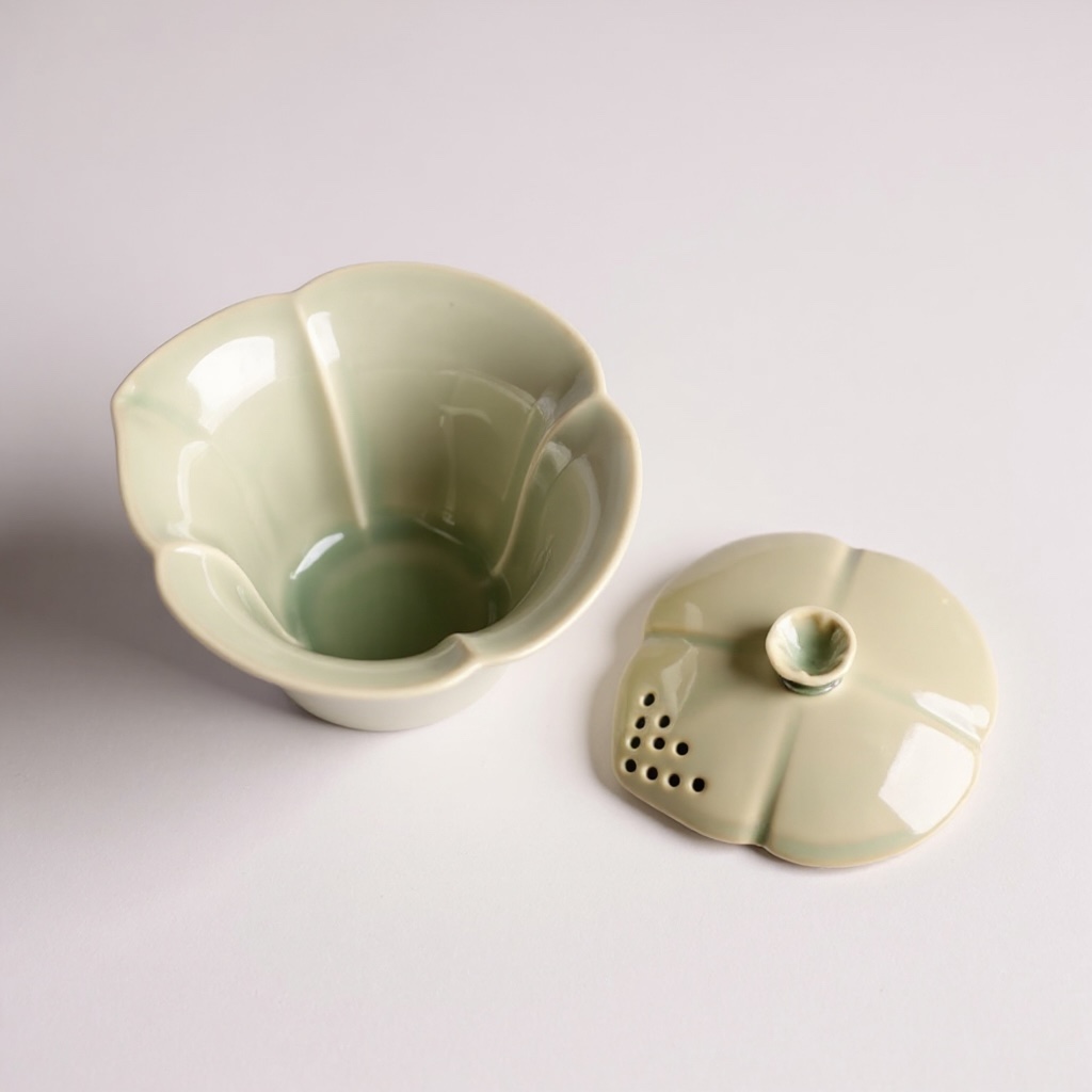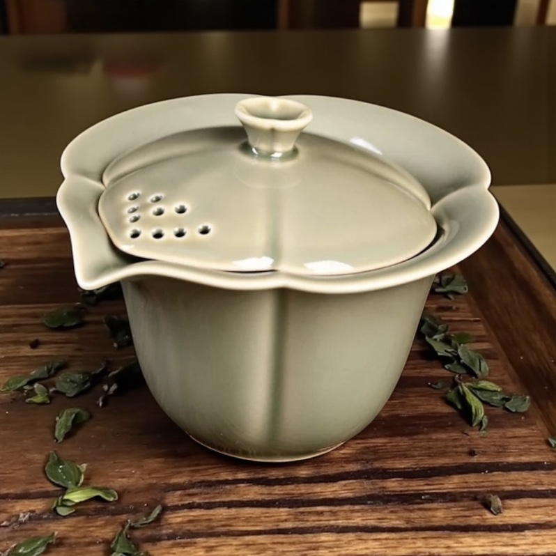 Adorabile gaiwan in celadon, originale di Yue. Un modo semplice per preparare il tè senza bisogno dell’abilità necessaria richiesta per l’uso della gaiwan tradizionale.