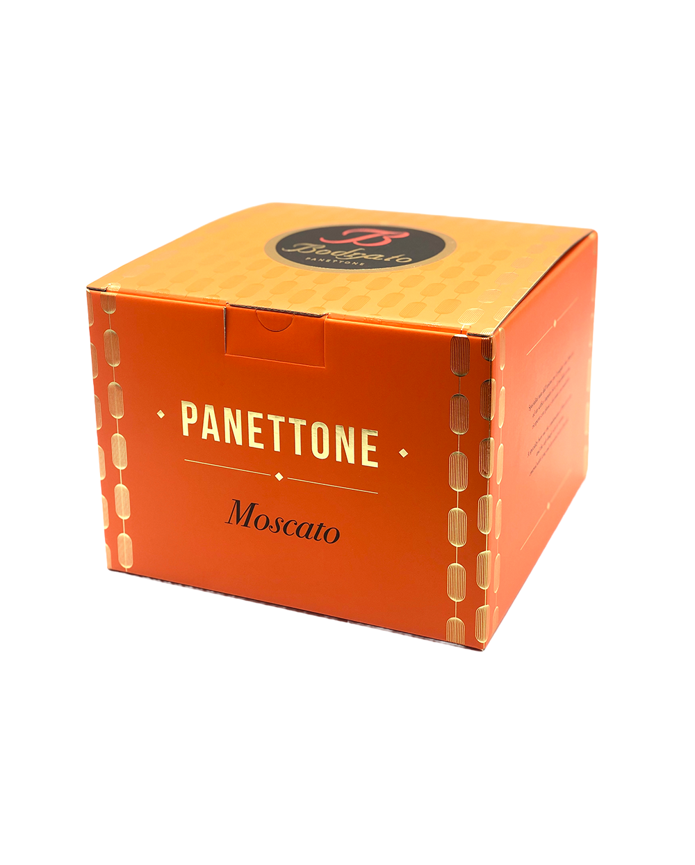 Soffice panettone al vino Moscato ricco di morbida uvetta, ricoperto di glassa e decorato con mandorle [...]